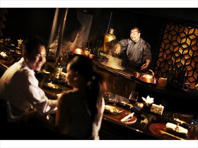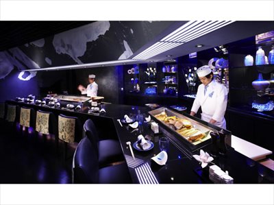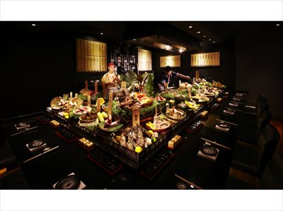 カウンター(ライブステーション)では、シェフが目の前で調理をし、それぞれの季節に合った日本料理を提供してもらえます。