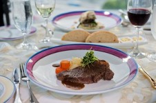 世界初の観覧車内で食事ができるスカイダイニング。巨大ゴンドラ内にテーブル・イスがセットされ、4品のコース料理が食べられます。このプランでは、2周の1時間の間ゴンドラで食事ができます。
